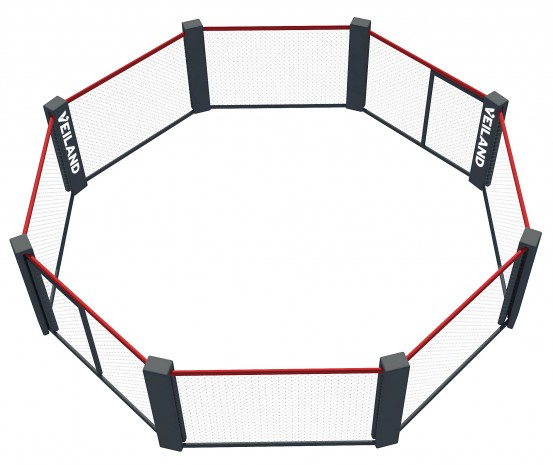 Клетка напольная OCT-WP1 бренда Veiland – напольный восьмиугольник без рамы с диаметром боевой зоны от 5-ти до 7-ми метров. В разработке и проектировании клеток этого бренда вместе с инженерами и командой передовых дизайнеров участвовали профессиональные бойцы и тренеры, благодаря чему они являются лучшими на рынке. Чтобы достичь таких результатов, не только используются лучшие материалы и весь опыт создания клеток, но и производится тестирование октагонов на предмет выявления возможных пределов.