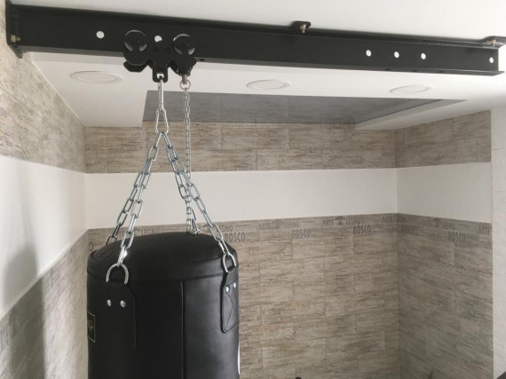 Рельса для подвеса представляет собой конструкцию с подвижными креплениями для мешка.