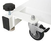 Благодаря специальным роликам стол чрезвычайно просто транспортировать. Ролики и рама снабжены двумя механизмами фиксации, причем размещенный на раме механизм используется также для выравнивания стола в горизонтальной плоскости. В горизонтальном положении размер массажного стола составляет 184х73х53/99 см.