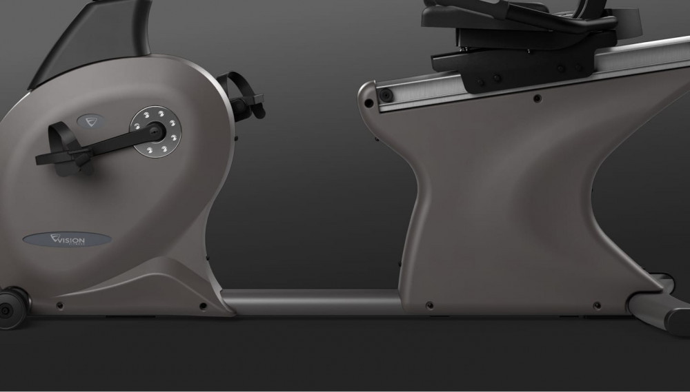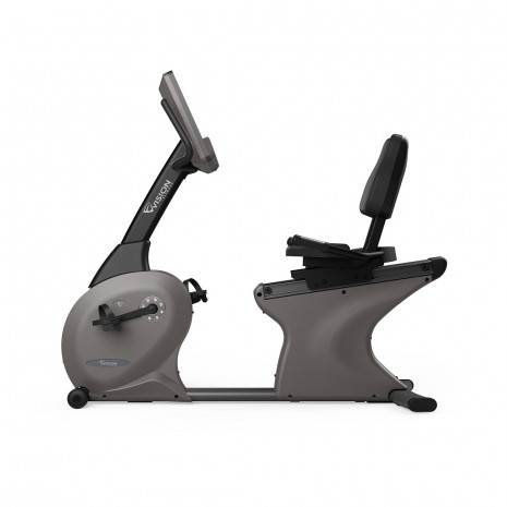 В конструкции горизонтального велотренажера R600E бренда Vision в качестве дополнительных элементов комфорта предусмотрены держатель для бутылки с водой и подставка под аксессуары.