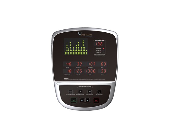 Велотренажер оснащен многофункциональным тренировочным компьютером с одним большим дисплеем, предназначенным для отображения тренировочного профиля, и шестью дополнительными дисплеями, на которых отображаются параметры тренировки. Дисплей консоли характеризуется максимальной информативностью и имеет простую, интуитивно понятную навигацию. Предустановленный пакет велотренажера U60 бренда Vision содержит двенадцать тренировочных программ, которые включают в себя помимо целевых и классических, две пульсозависимые программы, программу снижения веса и три Ватт-фиксированных режима.