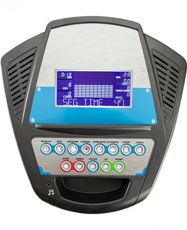 Тренажер оснащен консолью, со встроенными программами: 2 пользовательскими режимами, ручным режимом и 5 программами для тренировок, в том числе и кардио программой. Все параметры тренировки высвечиваются на ЖК экране консоли, для удобства пользователей предусмотрена подсветка ярко-голубого цвета.