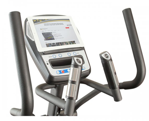 Оснащен дополнительных поручней с датчиками пульса и специальными кнопками, регулирующими уровень сопротивления.