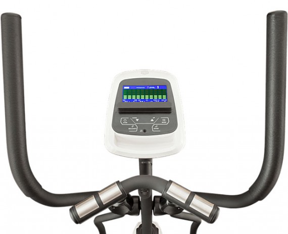 Кроме того, тренажер поддерживает телеметрию, к тренажеру можно легко подключить кардиопояс и узнавать точные данные о показателях пульса. На выбор предлагаются встроенные программы с контролем сердечного ритма THR, 55%, 65, 75%, 85%, а также специальные пользовательские программы.