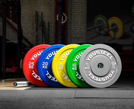 Тренировочные каучуковые диски изготавливаются из достаточно плотной и жесткой резины, в результате чего они отличаются долгим сроком службы, так как им не страшны частые падения. Кроме того, их падение не приводит к деформации резинового покрытия пола.