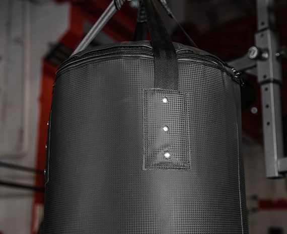 Мешок подвешивается на четырех стропах, которые пришиты прочной нейлоновой нитью. Для большей надежности крепления используются металлические заклепки.