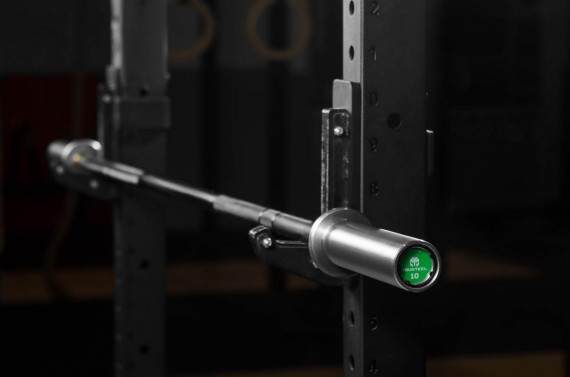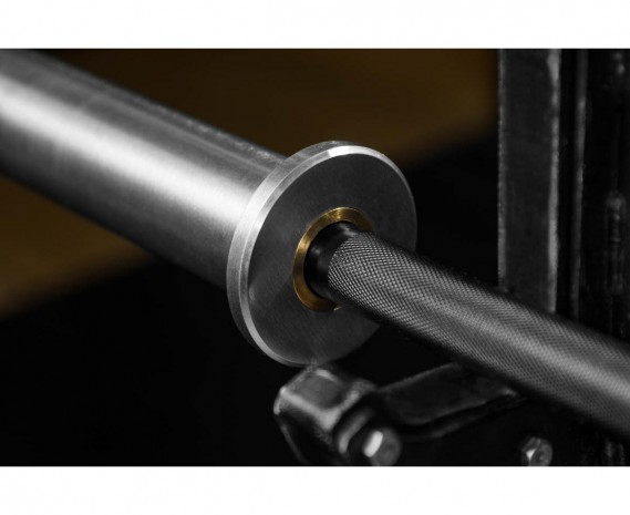 По краям предусмотрены два «кольца-метки», одно из них, расположенное ближе от центра соответствует стандартам тяжелой атлетики, другое – для пауэрлифтинга.