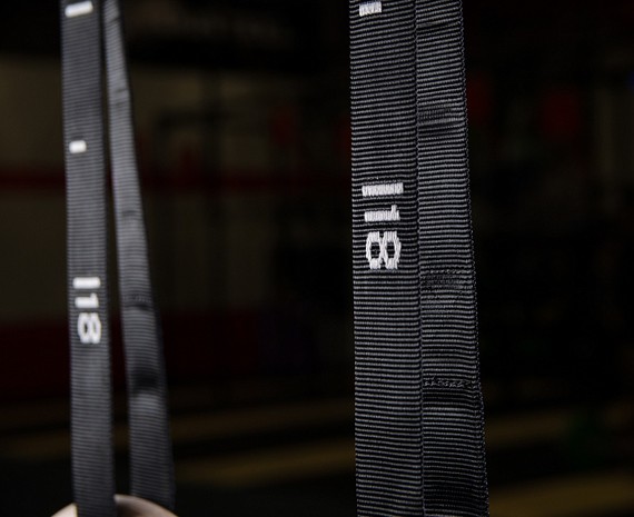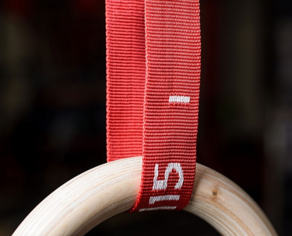 Маркировка на стропах позволяет подвесить кольца на одинаковой высоте. С помощью маркировки можно выбрать необходимую длину строп.