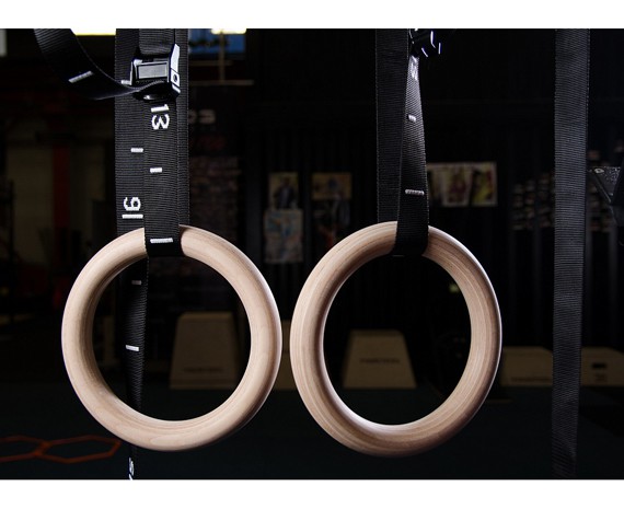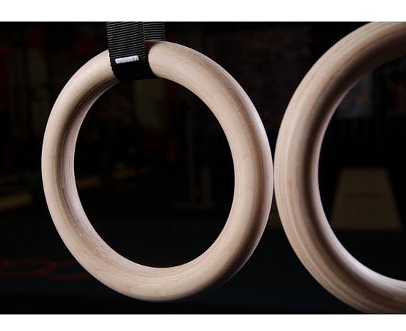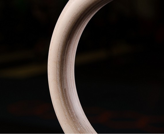 Гимнастические кольца изготовлены из фанеры, которая специальным образом отшлифована. За счет этого обеспечивается хорошее сцепление и удобный хват.