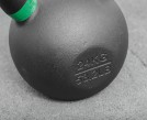Гиря имеет полнотелую конструкцию, отлитую из чугуна, на которую в качестве покрытия нанесена порошковая краска электростатическим напылением. Прочные гири выдерживают интенсивные тренировки и будут надежно служить в течение длительного срока. Вес гири в фунтах и килограммах высечен на ее основании, а ручки обозначены цветной маркировкой, что позволяет легко выбрать снаряд нужного веса.
