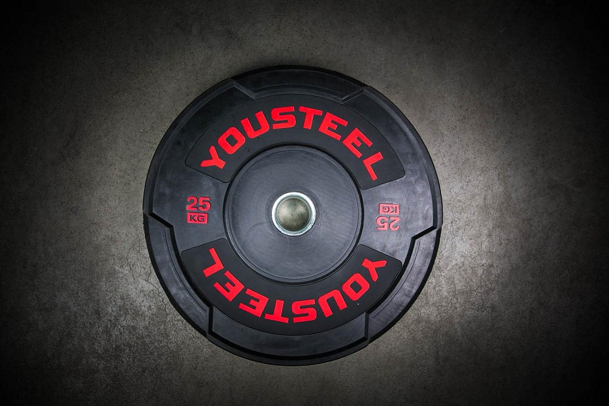 Диск каучуковый тренировочный ультра прочный YOUSTEEL Hard 25kg Black (25 кг, черный)