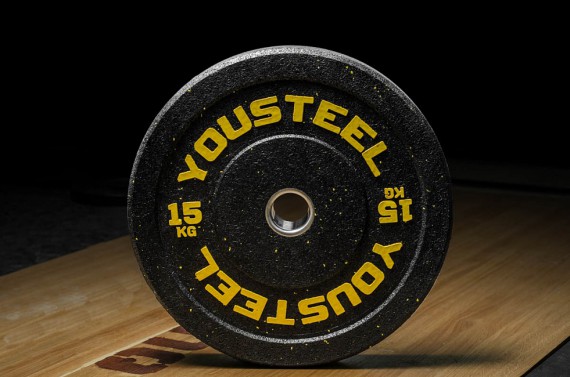 Диск каучуковый HI-TEMP из переработанной резины YOUSTEEL HI-TEMP 15 кг (черный/желтый)