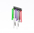 Кронштейн представляет собой металлическую пластину с логотипом бренда, на которой расположено 4 держателя длиной 150 мм с загнутым концом, что предотвращает падение скакалок и резиновых петель.