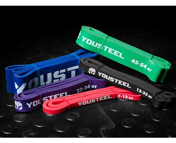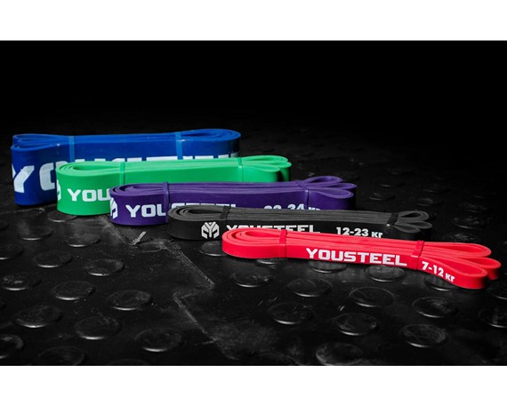 Выбор резиновых петель по степени жесткости определяется уровнем физической подготовки. Power Bands различаются шириной и степенью сопротивления. Причем в зависимости от этого резиновые петли имеют различную окраску. Резиновая петля для тренировок Power Band 13 мм бренда YouSteel сопротивлением 7–12 кг имеет окраску красного цвета.