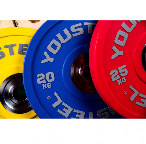 ВНИМАНИЕ!!! Диски 5кг не должны использоваться в одиночку, если предполагается, что штанга будет сбрасываться на пол!! Только в этом случае гарантируется исключительная долговечность полиуретановых дисков.
