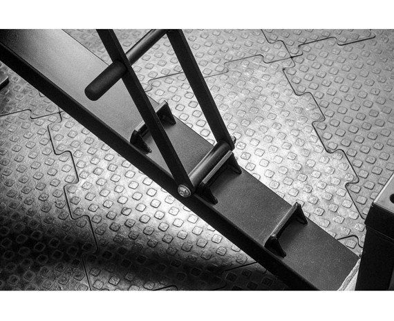 Т-образное основание скамьи обеспечивает ее устойчивость, не давая ей перевернуться.
