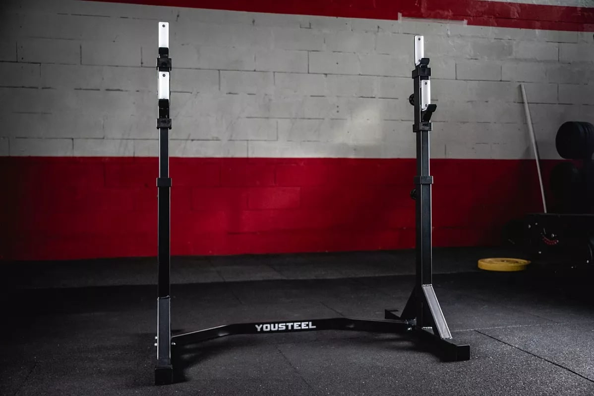 Стойка для приседаний SR-50TA бренда YouSteel представляет собой универсальную стойку для штанги. В этой модели были доработаны страховочные упоры, фиксирующие болты и конструкция опоры. Жесткость и устойчивость стоек увеличились за счет того, что был убран механизм регулировки ширины. Стойки теперь имеют фиксированную ширину, которая составляет 110 см. Страховочные упоры теперь расположены на подвижной части стоек, и пользователю больше ничего не мешает устанавливать их на необходимой высоте.