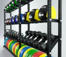 Такая зона, как правило, располагается вблизи зоны силовых тренажеров, порой объединяясь с ней. Зона свободных весов оснащается в гармонии с общей концепцией клуба. Обязательным является наличие в тренажерном зале зеркал.