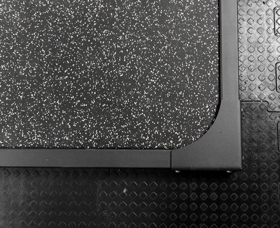 По периметру тяжелоатлетический помост ПРО бренда YouSteel окантован сборной металлической рамкой, которая не дает резине расползаться.