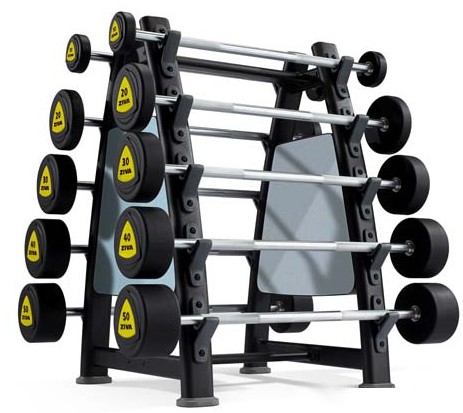 Стойки компании Ziva предназначены для хранения свободных весов. Многоярусные стойки помогают поддерживать порядок и всегда иметь нужный снаряд под рукой. Данная модель стойки относится к двухстороннему типу и позволяет хранить 10 пар штанг. Главная отличительная особенность стойки – высокопрочная стальная конструкция. Для того, чтобы сохранить первозданный внешний вид как можно дольше, был использован порошковый метод окраски. Ножки стойки с силиконовыми накладками, которые защищают пол от царапин и вмятин.