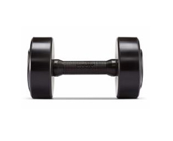 Гантели с черной уретановой рукояткой и красным/синим/оранжевым/желтым/белым логотипом.