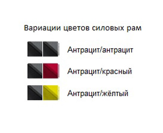 Рама доступна в трех цветовых решениях: антрацит/антрацит, антрацит/желтый, антрацит/красный.