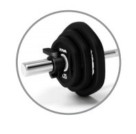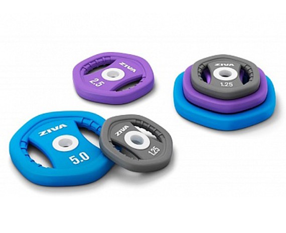 Для удобства выбора необходимого диска маркировка каждого веса обозначается своим цветом: диск весом 1.25 кг – серого цвета, 2.5 кг – фиолетового, 5 кг – голубого. Имеются также наборы в сером или черном цвете. При необходимости доступен диск весом 10 кг, который промаркирован черным цветом.